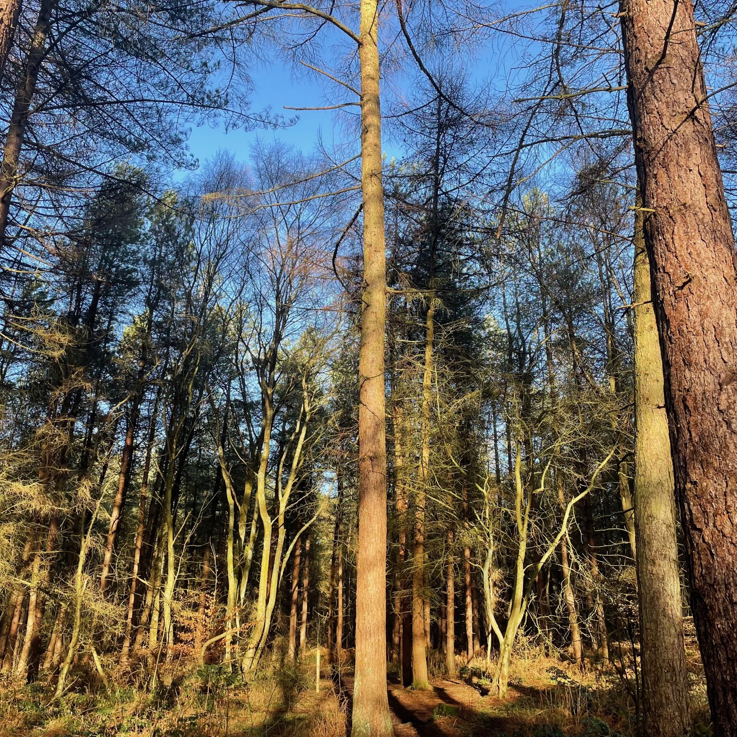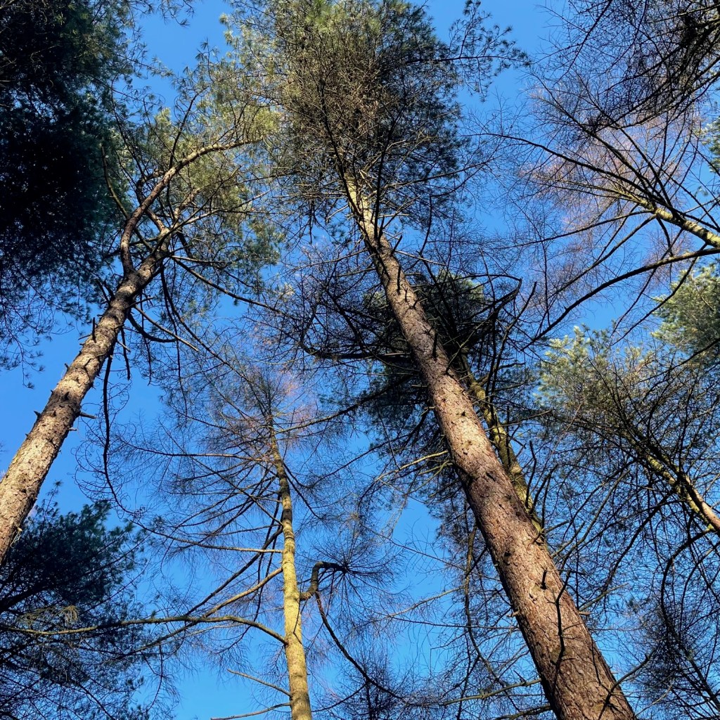 I needed a tree hug and had one. Beautiful experience. Absorbing stresses, worries, frustrations and returning love, reassurance, peace. Walking amongst them in awe at their vastness, age and good vibes. Clearing my head, amongst them… Whilst some stand bare waiting the springtime buds of blossoms. Some are evergreen and majestic.