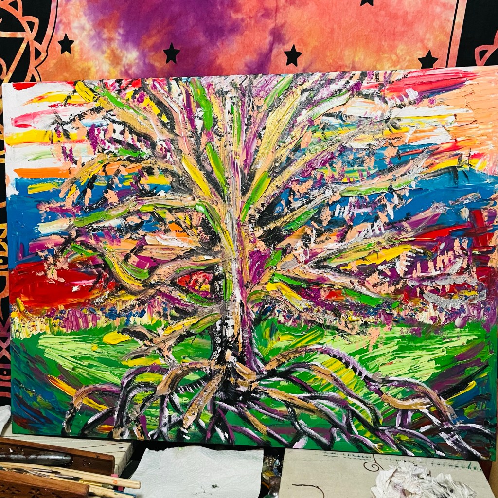 I have always been creative. A gift or learned? From crayons to paints, from keyboards to guitars, drums and many other instruments… I only know I enjoy it and find it easy to do. That doesn’t mean I haven’t practiced it and dedicated my life. I have. Things flow easy like a stream. I often think I’m a conduit. A human that channels ‘things.’ I don’t have to think too much. I simply set an intention. I’m well practiced at this, like anything, it didn’t just happen over night. Decades of commitment. Rewarded with a body of work, enjoyment and experience. The end result of ‘going with the flow’ is very lovely. Like my abstract art and improvised musical performances, this blog will be rife with grammatical errors. Perfection is not for me.